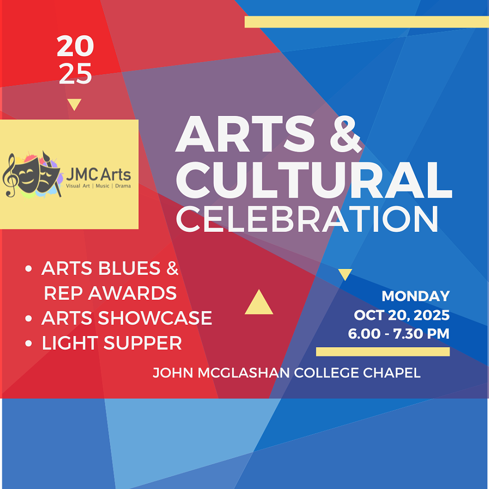 The Arts & Cultural Celebration will be held in the Chapel Monday October 20th from 600pm to 7.30pm - and will recognise our Arts Blues and Rep award recipients for 2025 as well as featuring performances from some of our star acts.