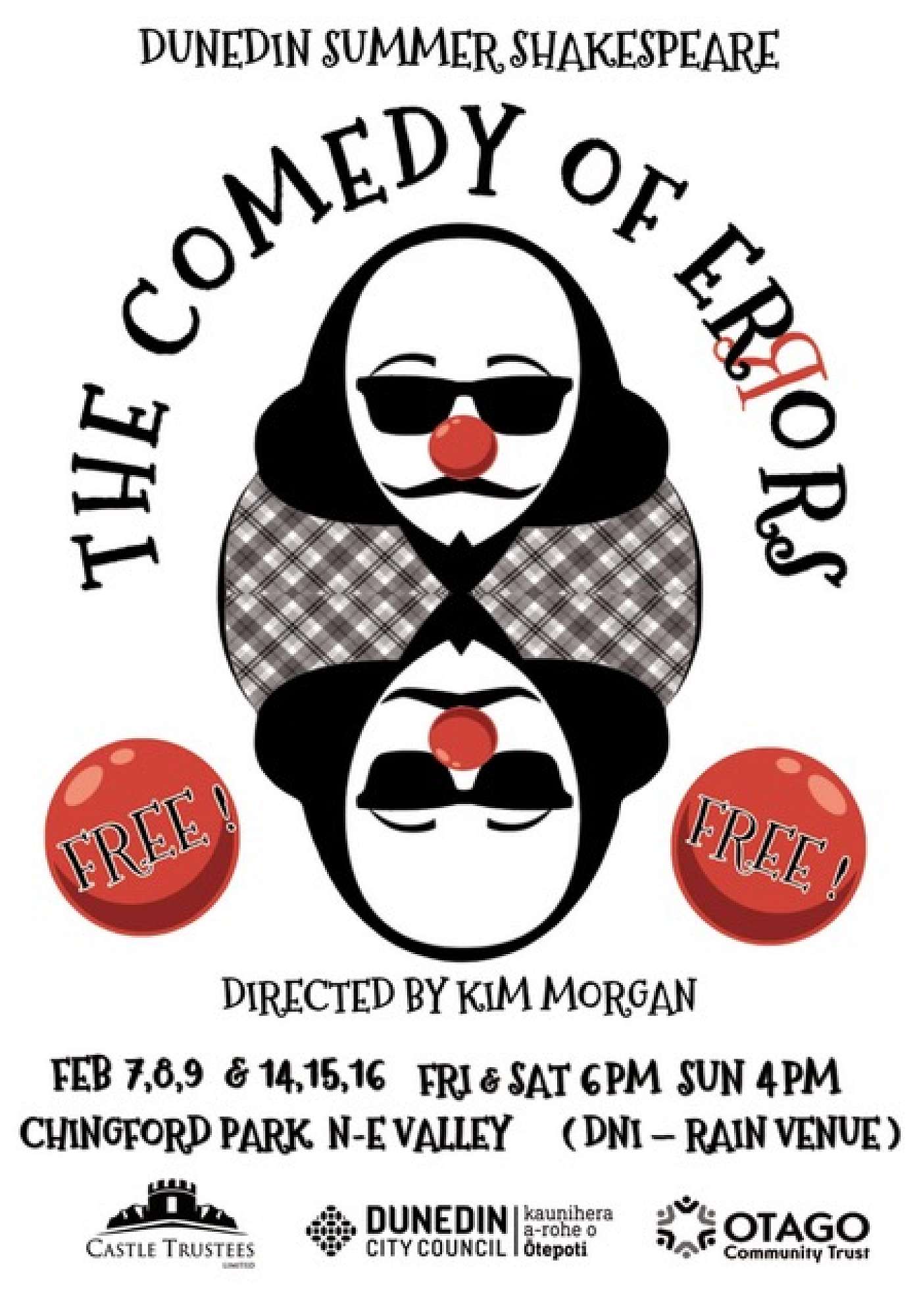We're extending the invite from Dunedin Summer Shakespeare, who'll be performing "The Comedy of Errors" on Feb 7,8,9 & 14,15,16 in Chingford Park in North East Valley (Friday & Saturday - 6pm, Sunday - 4pm). The show will be held in a lower glade in the gardens and is planned to be accessible for all.
