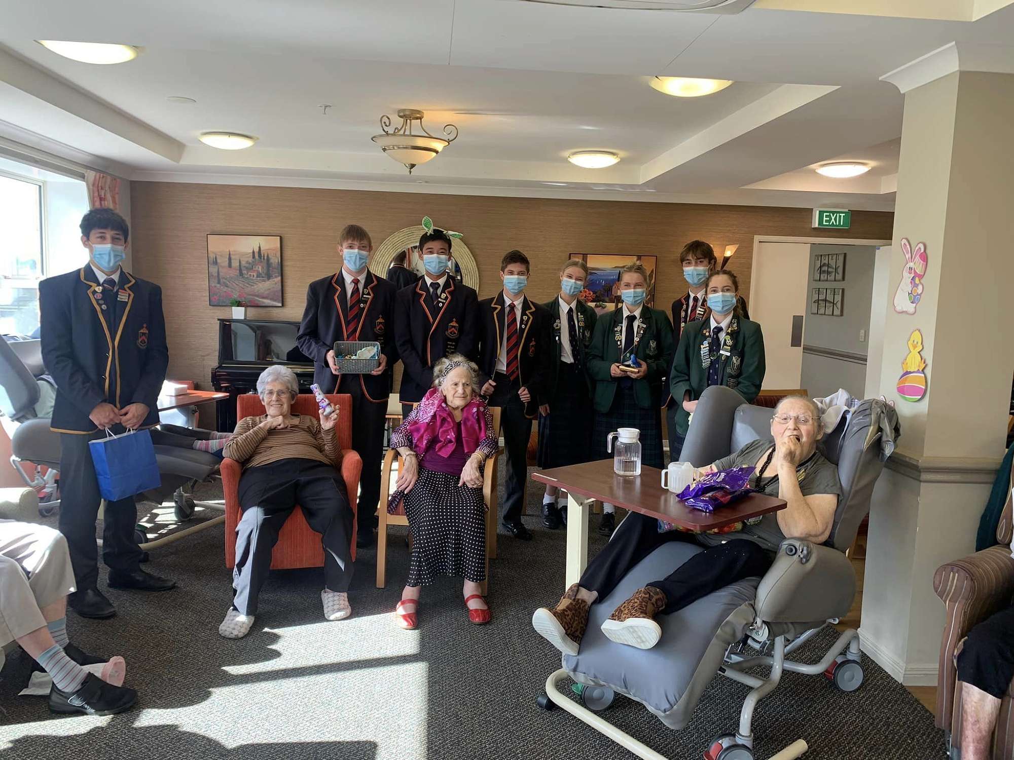 The prefect teams of Columba and John McGlashan Colleges once again collected, packaged and delivered Easter baskets to the residents of a few retirement villages and Presbyterian support, but this time, in-person again after a lay-off of two years of face-to-face connection caused by the Covid pandemic.