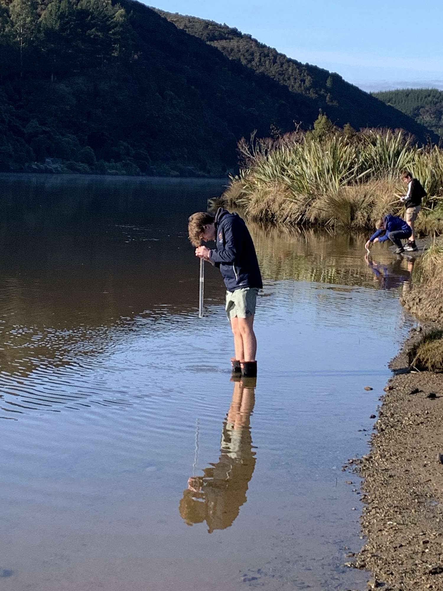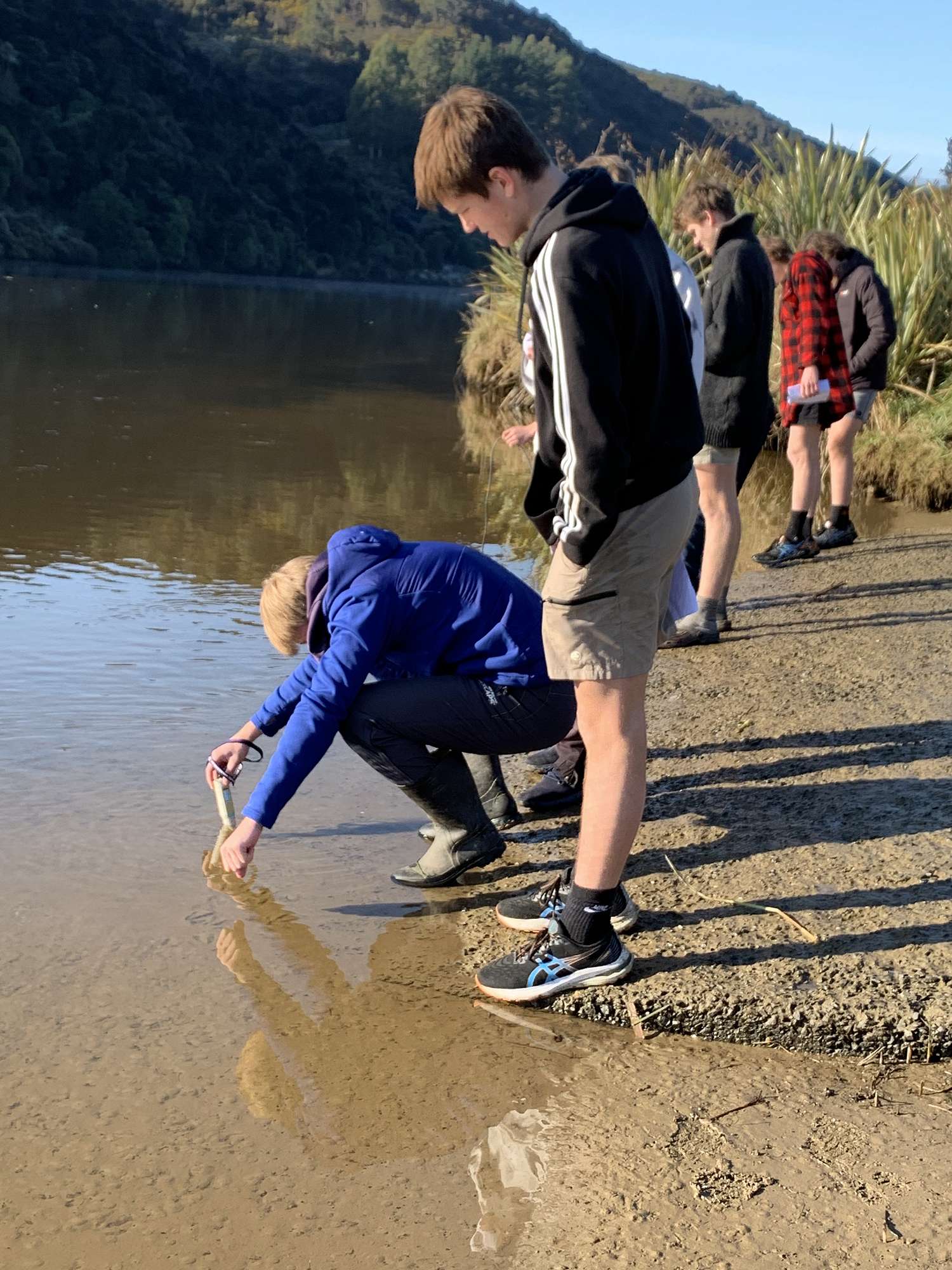 A few days ago the Year 12 Agribusiness class headed out to test the waters of the Taieri River armed with specialist environmental science equipment. After an introduction to the Taieri flood plain history from the Three Mile Hill viewpoint, we headed out to the Glen, Outram to begin testing at the first of six sites. Every student had the opportunity during the day to use each piece of equipment and record the data for the rest of the class.