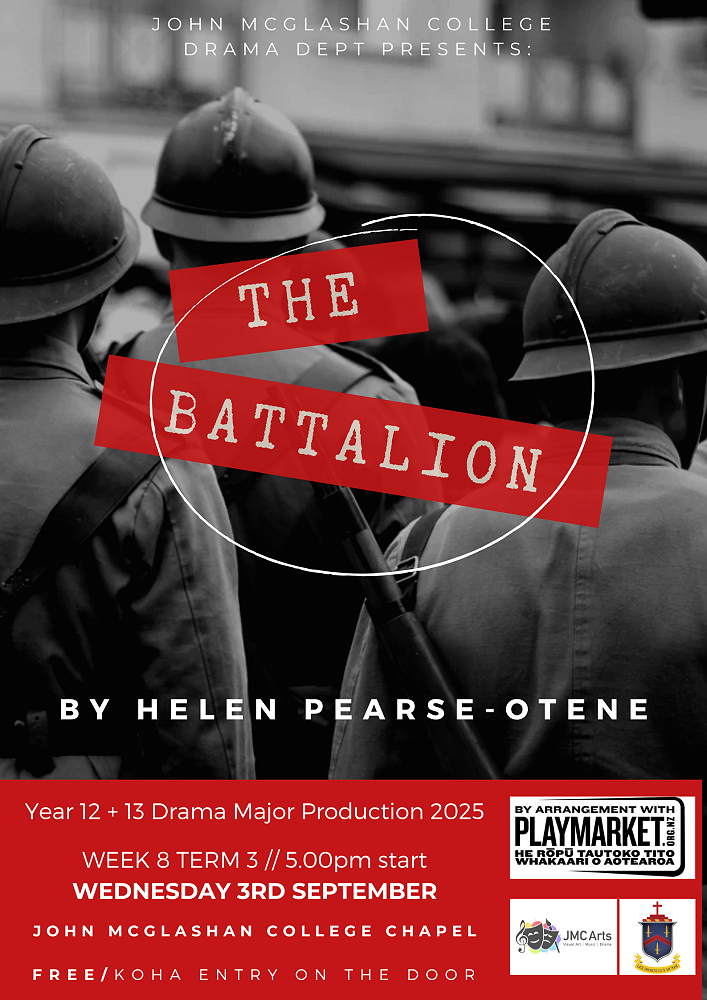 The Battalion is a one-act play that delves into themes of friendship, loyalty, madness, and redemption. It highlights how understanding the sacrifices and experiences of those who came before can provide guidance and meaning for the future. The play, with its focus on Māori history and culture, offers a compelling theatrical experience. The play will be performed in our Chapel in a creative traverse layout, with added features including beautiful original music composed by Year 12 student, Timothy Stevens.