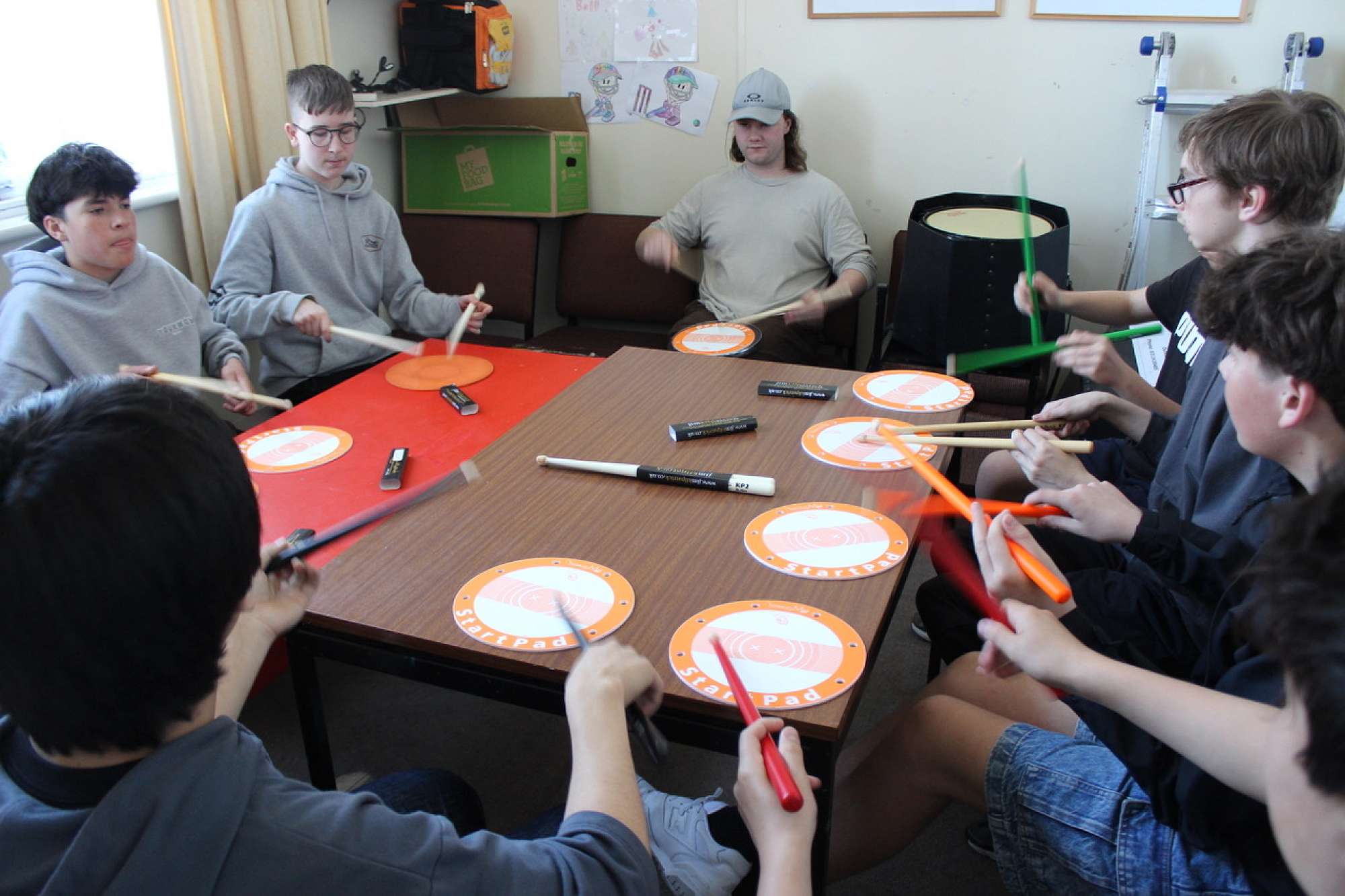 Over in the music room, Sam from Cue Go gave the boys a sample of beat production, and I was pleased to hear a few students playing their beats back to each other in the hallway! One student even got particularly creative with a Nintendo DS, which I hadn't realised were still a thing...