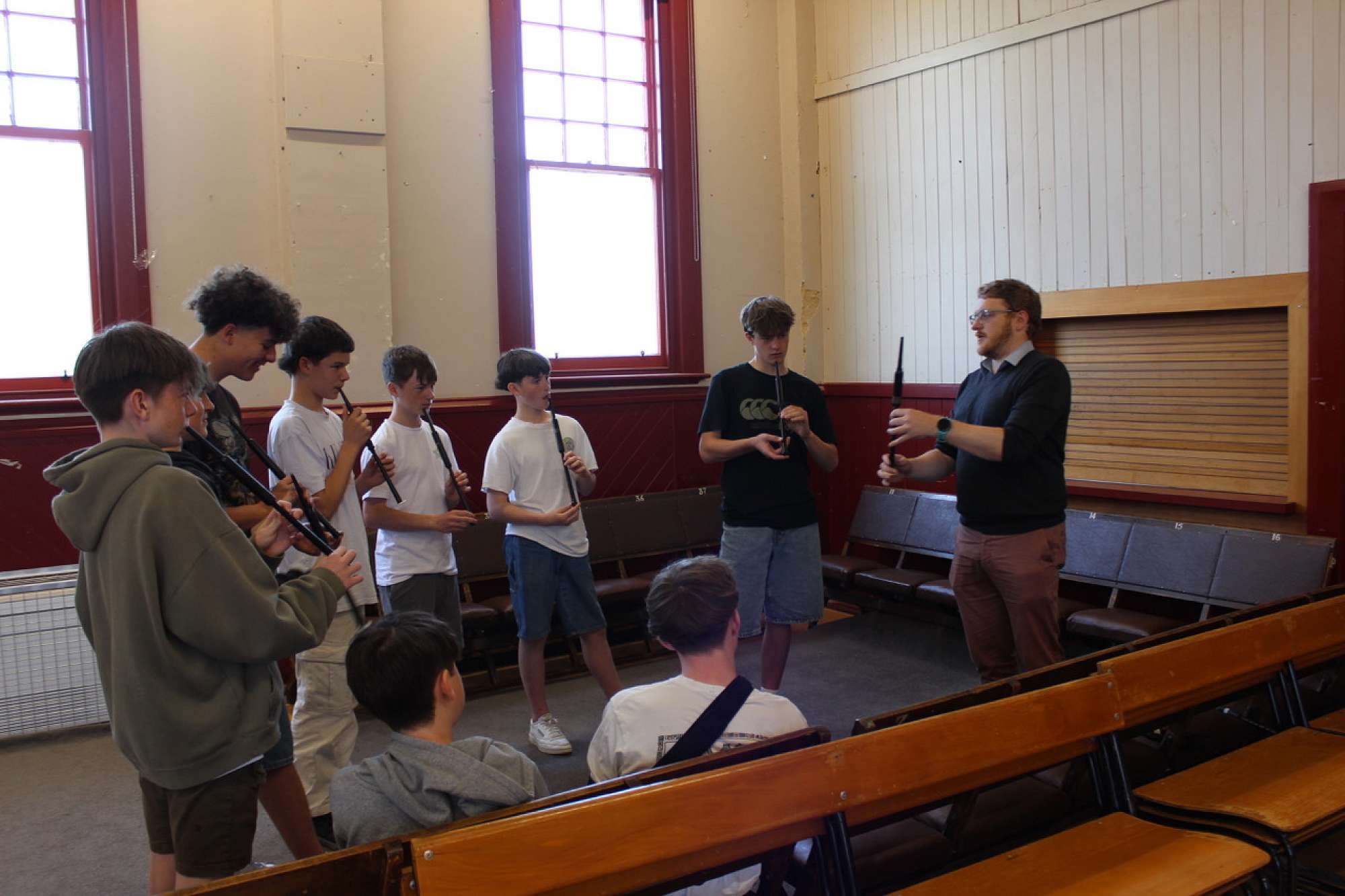 And attempting to put together some lines from 'Jingle Bells' as a Pipe Band (an extremely difficult thing to do in one afternoon!) with the City of Dunedin Pipe Band.