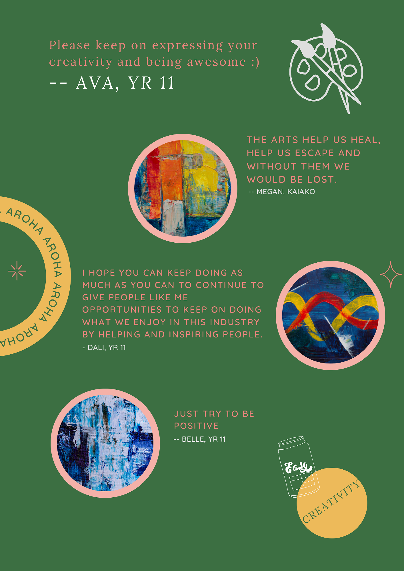 Messages of Aroha has had some great traction online this week, with a fantastic video and article in the STAR newspaper (click here to see Sending Support to Creatives) and M.O.A will also be featuring in Ara Toi's publication in the next few weeks.