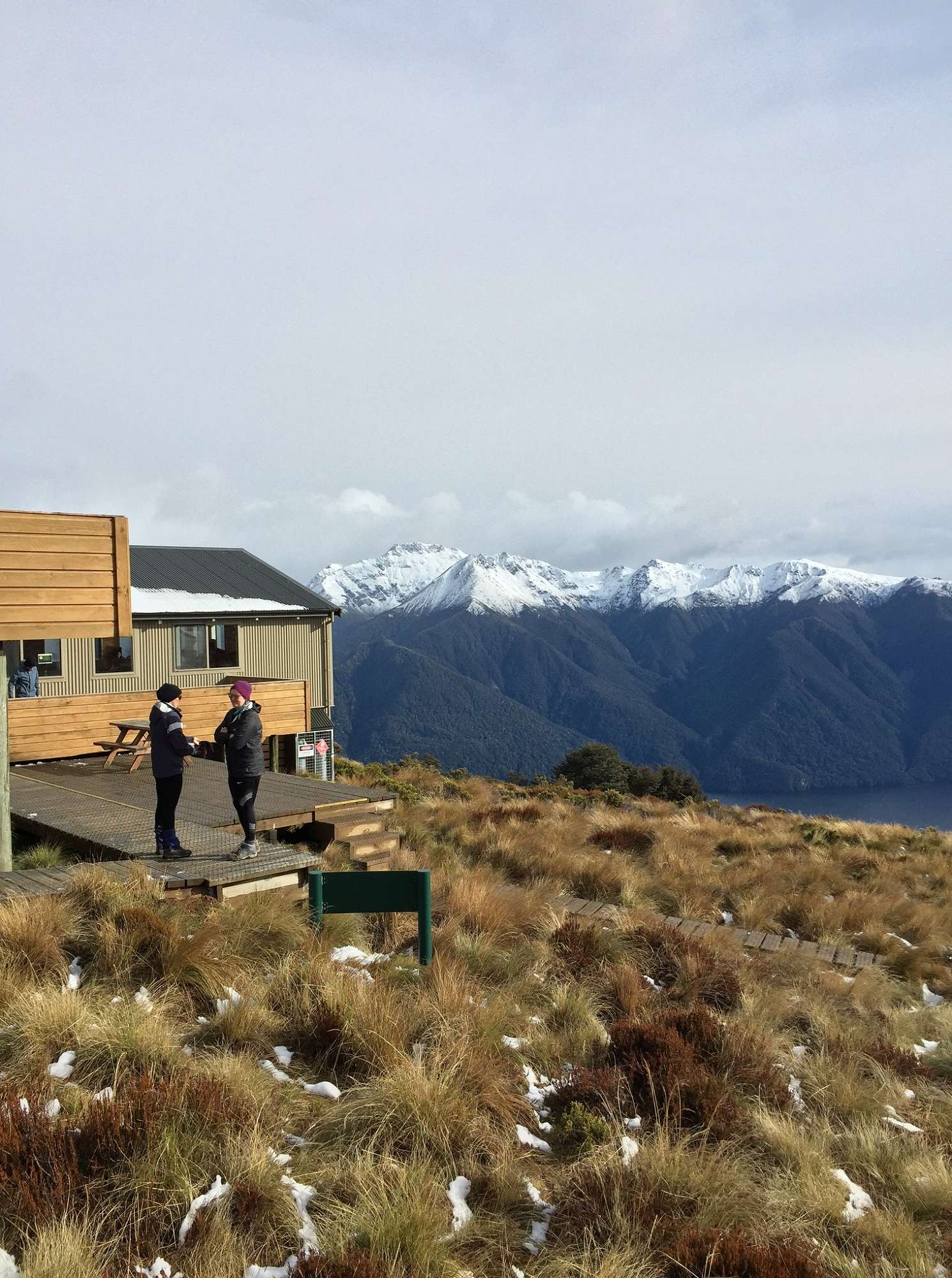Here we regrouped and had an early lunch that consisted of salami and crackers, which was about all we had for the next three days. It was important to refuel here as ahead of us was about 8.5 kilometres and 4 hours of straight uphill walking. It was definitely hard on the legs but we made constant breaks for food and drink. We were all feeling the weight of our packs except for Ian Audas whose pack for some reason felt like it had nothing in it. About six or seven kms from Brod Bay we were starting to see snow and had finally exited the bush and the trees to a beautiful sight of glistening snow and cold air. This felt like a milestone for most of us as the majority of the day had been walking in the humid bushy area. It was a definite contrast as the snow was so bright it was hard to keep your eyes open. At this point we were quite high up and it was here where we started to layer up. It was only 45 minutes until we were to reach Luxmore Hut. When we started to see the roof of the hut it was an amazing feeling, one that is hard to describe. I’m not sure what the emotions were that went through Moses when he finally reached the “Promised land” but I’d say it was pretty close to what we felt when we reached Luxmore Hut that day.