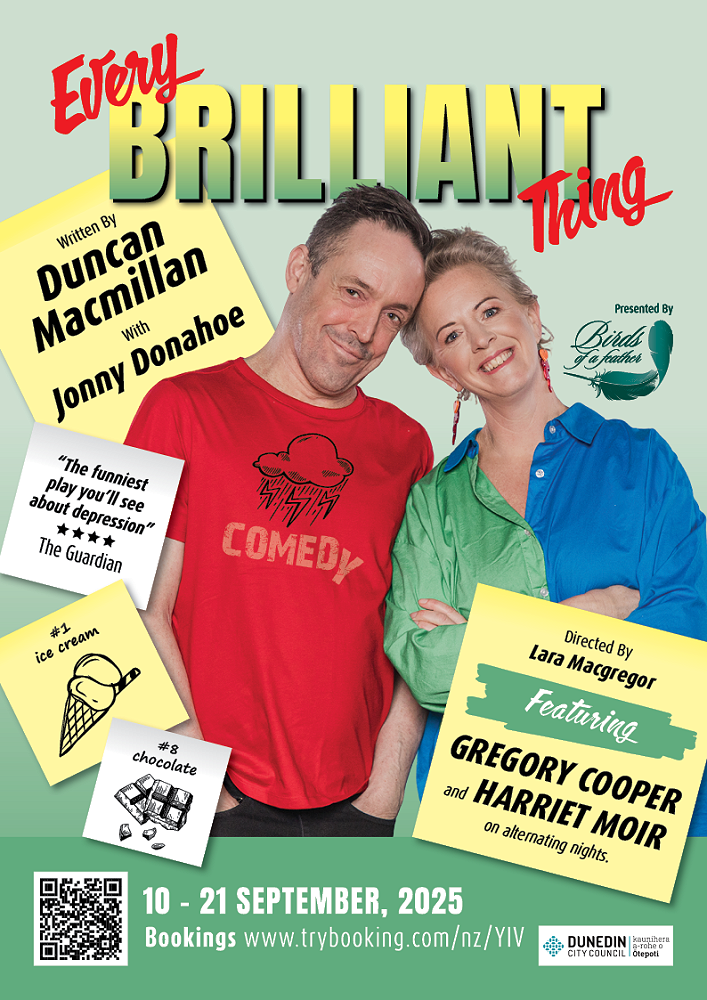 This unique and critically acclaimed play has become a global phenomenon, playing over 80 countries worldwide. Says director Lara Macgregor; “This play is truly special in that it is part script, part improvisation, and a whole lot of shared experience. Opening on World Suicide Prevention Day, EBT doesn’t shy away from talking about depression in the most funny, uplifting, and deeply human way. I cannot wait to laugh and cry, and cry with laughter, alongside our Dunedin audiences.”