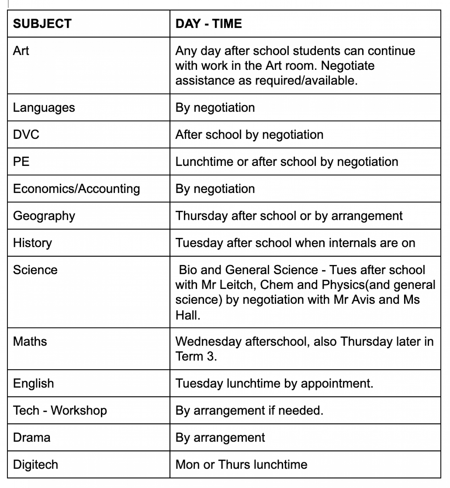 Tutoring times: