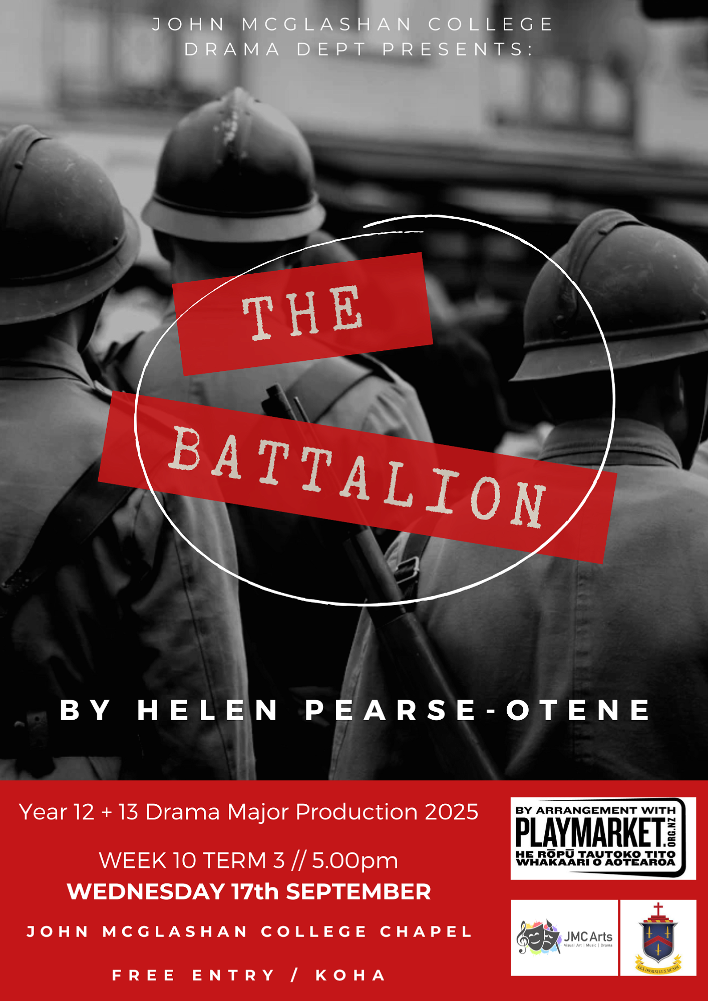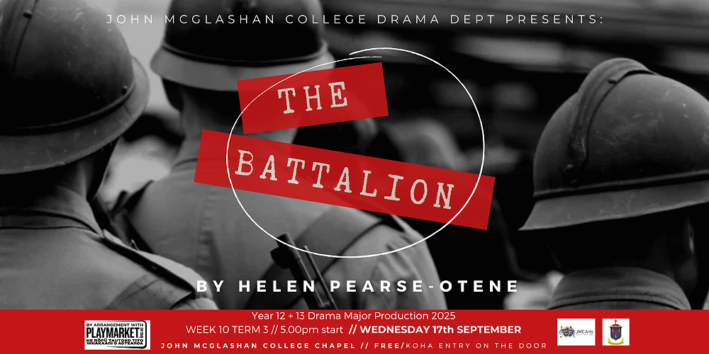 The Battalion is a one-act play by Helen Pearse-Ortene (of Te Rākau Theatre Company) which delves into themes of friendship, loyalty, madness, and redemption. It highlights how understanding the sacrifices and experiences of those who came before can provide guidance and meaning for the future. The play, with its focus on Māori history and culture, offers a compelling theatrical experience. "The Battalion" will be performed in our Chapel in a creative traverse layout, with added features including beautiful original music composed by Year 12 student, Timothy Stevens.