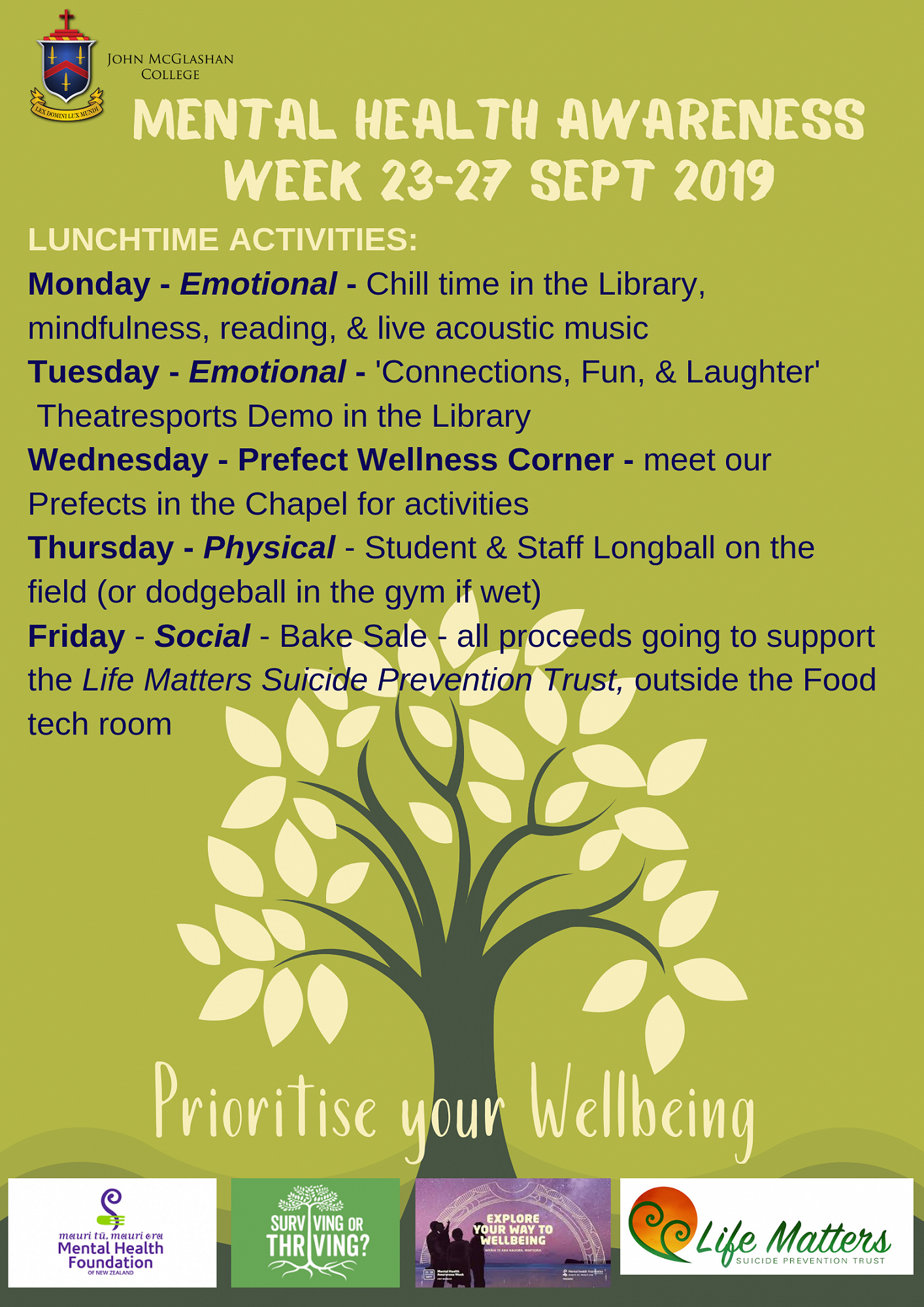 John McGlashan College has a range of activities planned for students and staff for Mental Health Awareness Week next week.