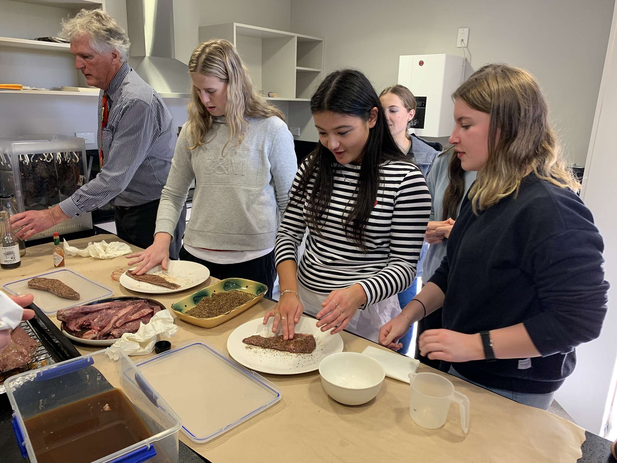 We departed Wednesday morning early for Hamilton to spend time with the St Paul's Collegiate Agribusiness students. Chris Foot, Melanie Simmons and the students treated us to a feast of activities including biltong and beer-making, dried fruit and cheese tasting. All these products were made by the students as examples of value-adding innovations to standard products.
