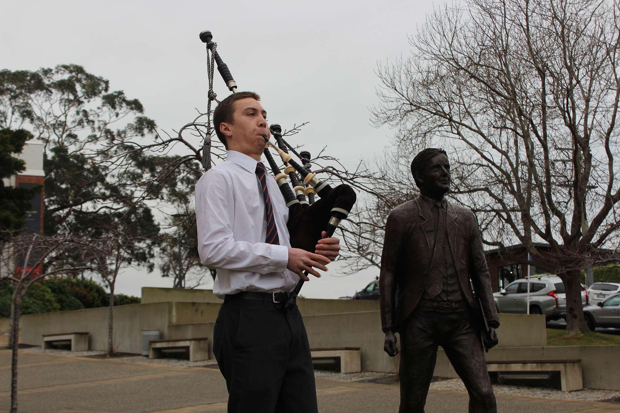 As the delegation proceeded onto the grounds, they were serenaded by our very own Caleb Ung on the bagpipes - giving the welcome a distinctly Dunedin flavour.