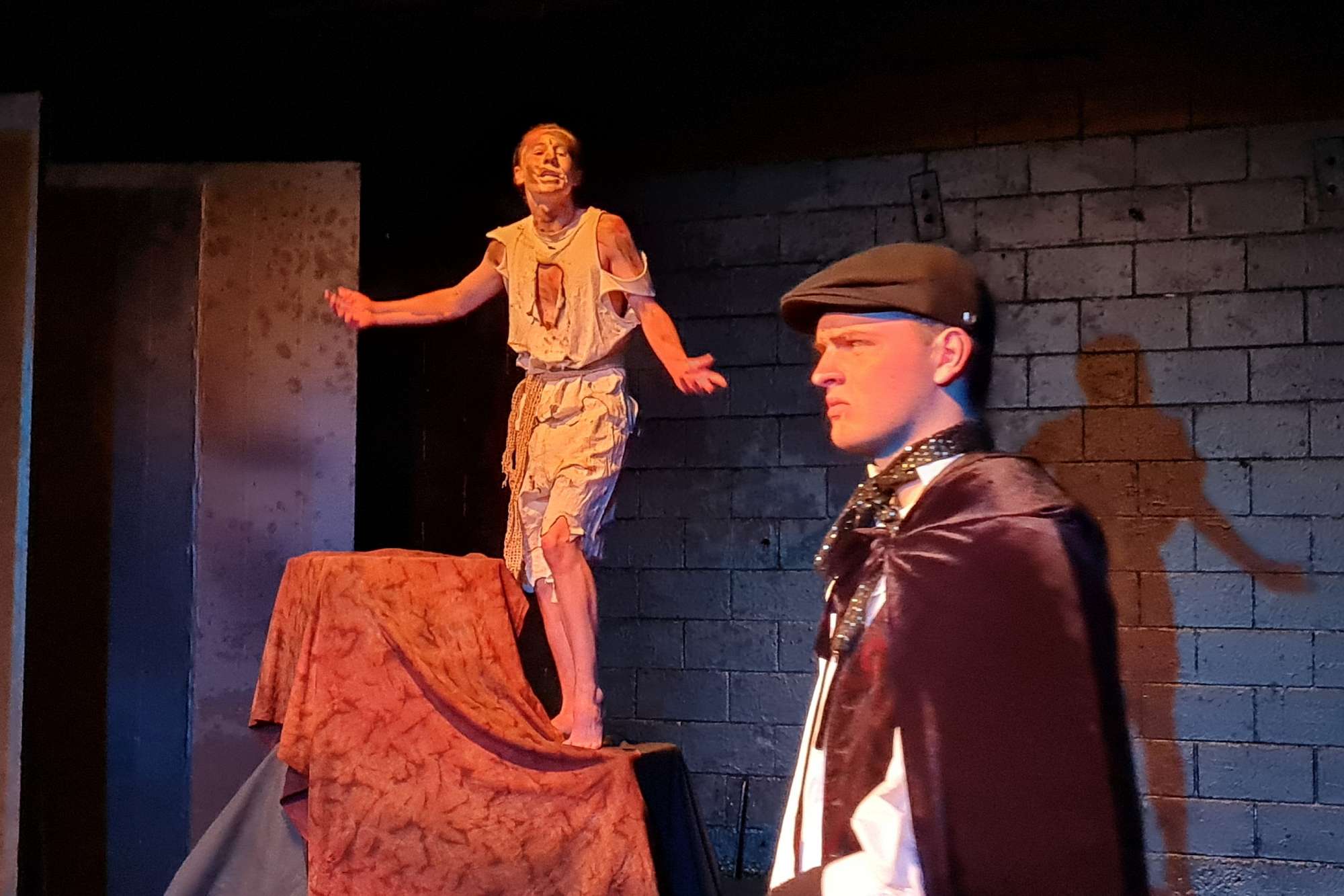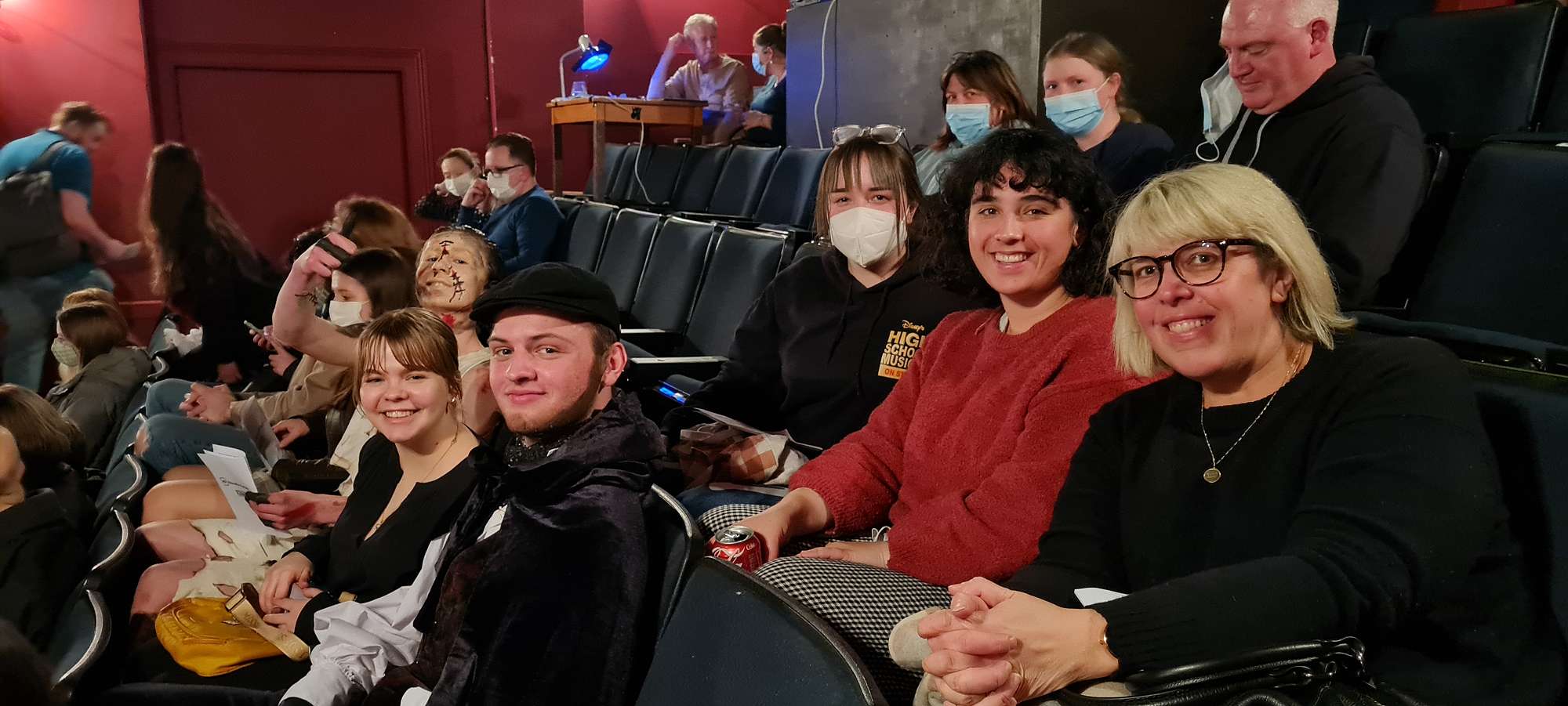 Supporting our actors Finlay and Mitchell behind the scenes were Dana Wister (Yr13 Columba College), Brie Monk (Yr12 Columba College), Reva Grills (Arts Coordinator) and myself, providing crew support for makeup, costume, sound, lighting, & staging. It takes Dana around two hours to do Finlay's macabre makeup effects for the performance, which is no small feat! This dedication also saw her score an Excellence in Design award.