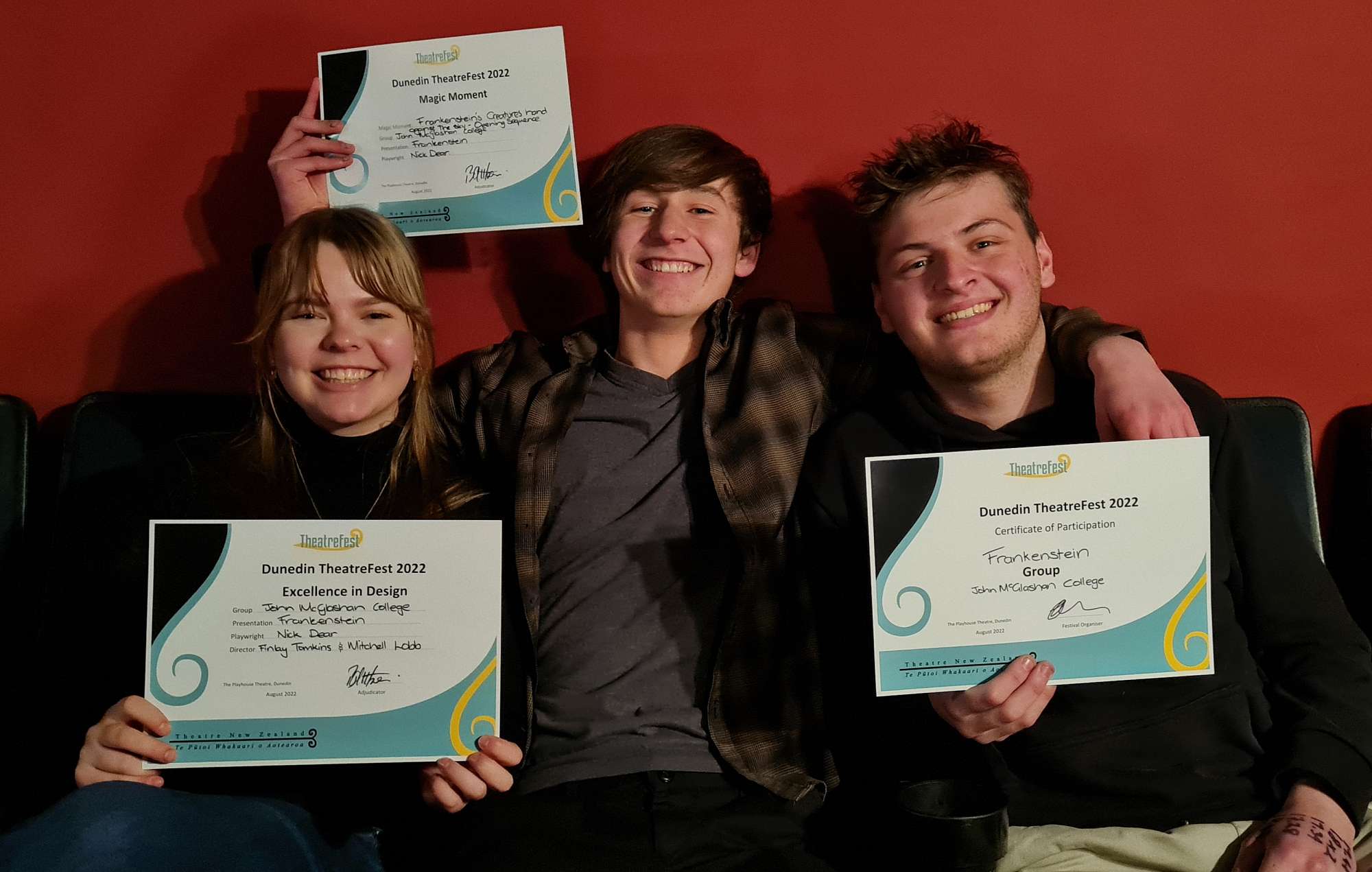 There were four technical rehearsal and performance sessions across Saturday and Sunday, with an awards ceremony late on Sunday afternoon. We came away with two awards and have been selected to perform in the next round of Theatrefest in Arrowtown in less than two weeks time, for the Lower South Island Regional Competition. It is a very quick turnaround, but the team are excited by the prospect of making a few tweaks to the scene and bringing it to an even bigger audience.