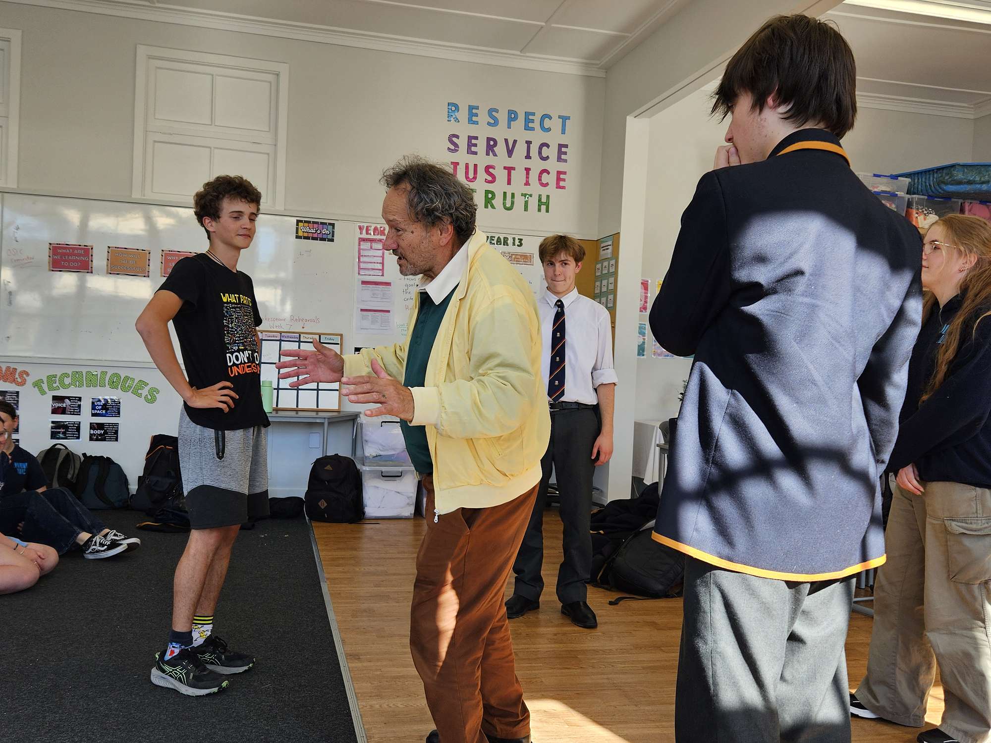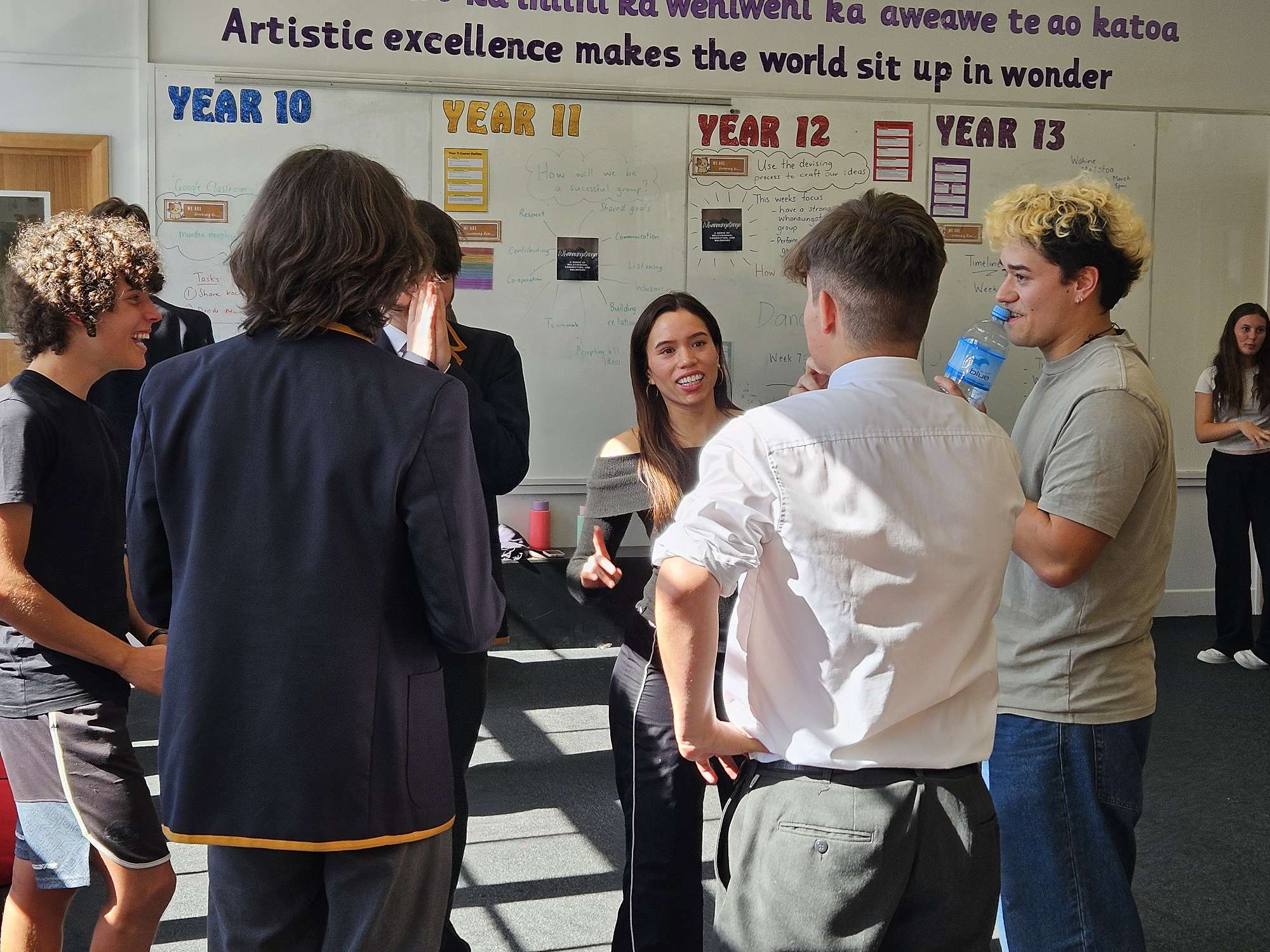 On Thursday, 13th March, a group of our Year 11, 12, and 13 drama students had the unique opportunity to participate in a Theatre Marae workshop led by Te Rākau Hua o Te Wao Tapu, Aotearoa New Zealand’s longest-running independent Māori theatre company. This enriching experience, held at Trinity Catholic College, was an immersive journey into identity, whakapapa, and citizenship through the power of devised theatre.