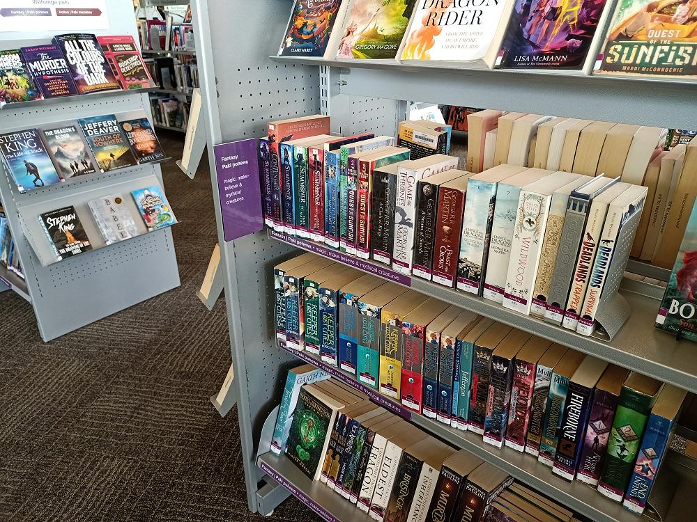 A long term project in the library this year has been to reorganise our entire fiction collection into genres (a process called genrefying). Instead of being shelved in an alphabetic sequence by author surname, our fiction books are now shelved alphabetically within one of 12 genres (Action, Classics, Dystopia, Fantasy, Historical, Horror, Humour, Life, Science Fiction, Sport, Suspense or War). This has been a significant undertaking, involving researching the pros and cons, updating catalogue records, and relabelling each book with a new colour-coded spine label.