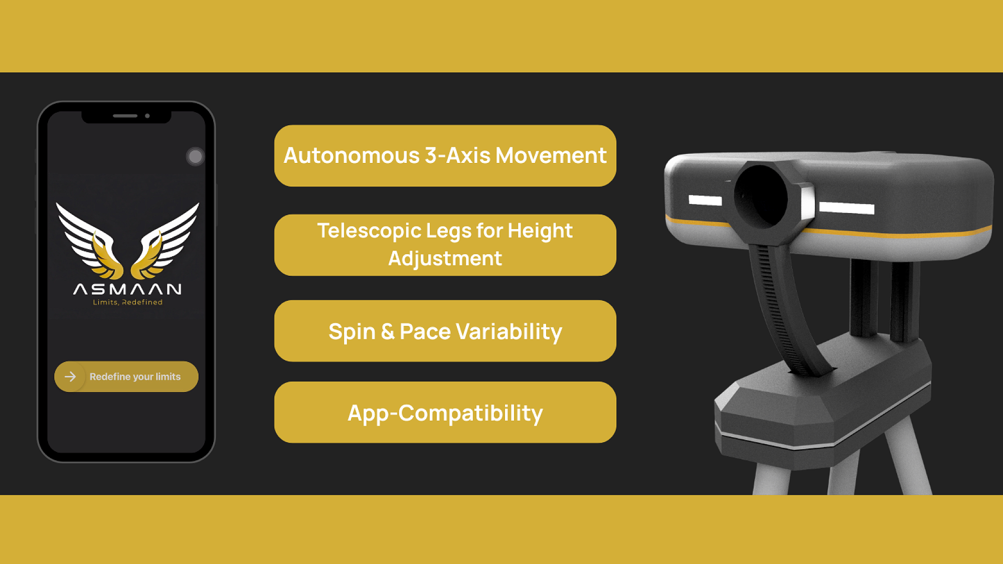 Asmaan One is a portable, autonomous cricket bowling machine that delivers realistic, game-like training, helping grassroots and amateur cricketers train anywhere, anytime.