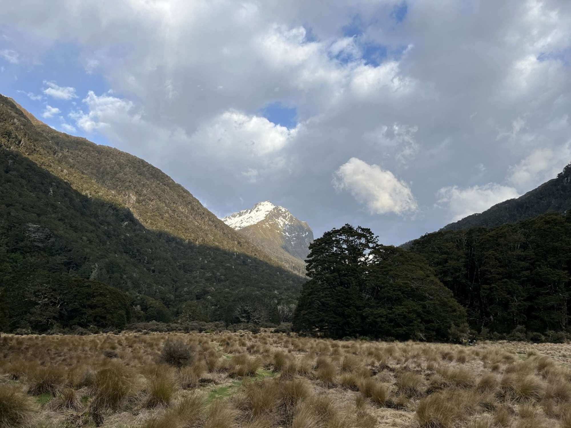 From the Control Gates to Rainbow Reach car park, we started on what would be one of the most entertaining and fulfilling tramps of our lives. Starting gently, the group enjoyed a gentle stroll along the first part of the track. There were majestic beech trees on our left, which were tall enough to reach the stars and to the right was a lake so calm and pristine. Our nostrils filled the earthy sense of the flora around us. Our route took us along the course of the Waiau River, where the water flowed gently beside us. 15km later, we reached Lake Manapouri; it was such a beautiful sight to see, with the distant snow-capped mountains in the background. Our first night was at Moturau Hut, a peaceful lakeside hut with the most breathtaking views. It was an enjoyable night full of laughter, Uno and K’s and A’s.