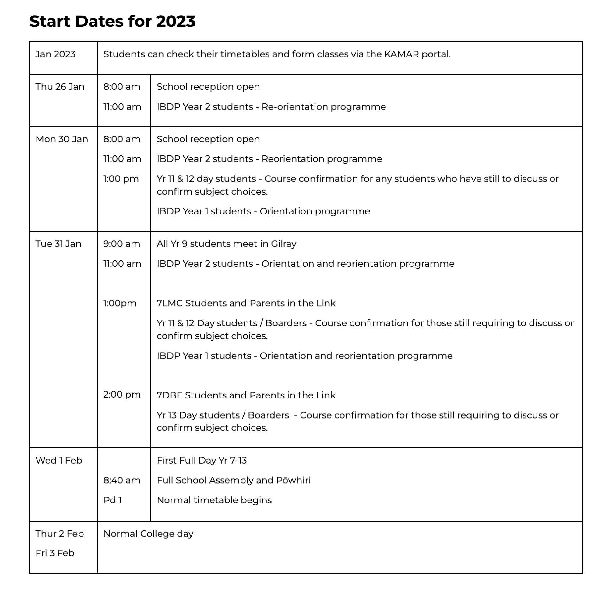 The 2023 Student and Parent Handbook is now available. Please pay particular attention to the start-of-year arrangements these are copied below: