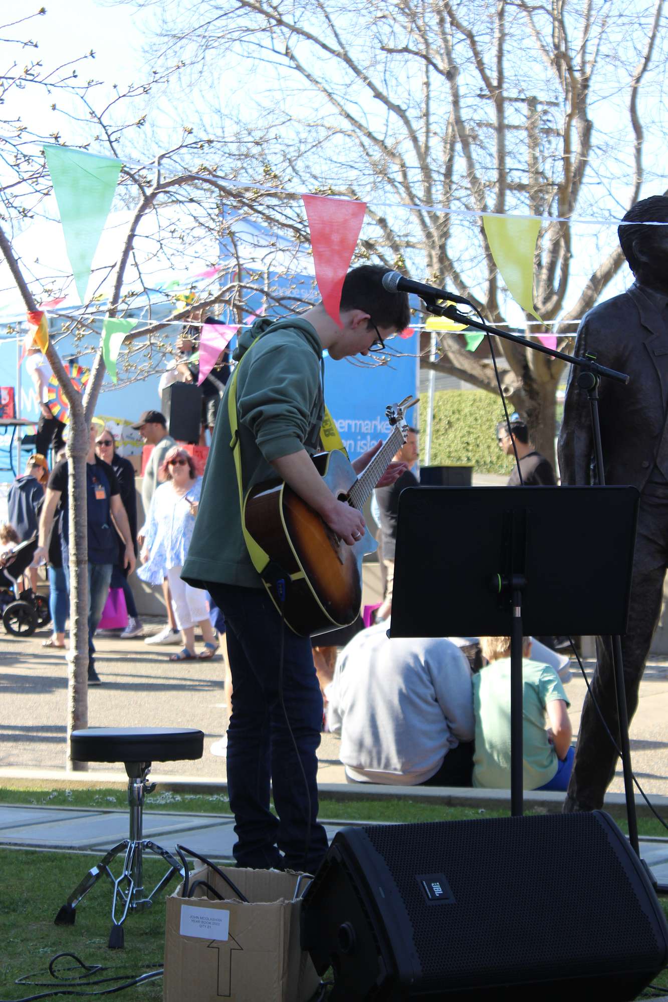 Our music groups and musicians were on full display at the John McGlashan fete. With the Choir and Jazz band both going through their entire repertoire to the crowds, and amazing performances from many of the student bands. There was also a spot near the chapel in which a few of our solo musicians shared some incredible music. It was a big day for our wonderful HOD Music Steven McNulty, setting up all the sound gear and mixing/adjusting mics and sound continuously in two different spots for the whole event.