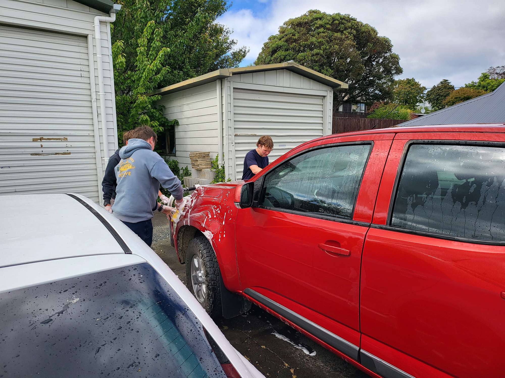 Here are some snapshots of the boys washing cars as part of their workplace risk assessment.