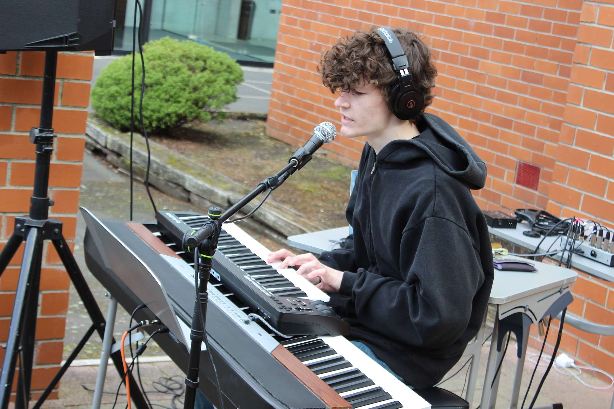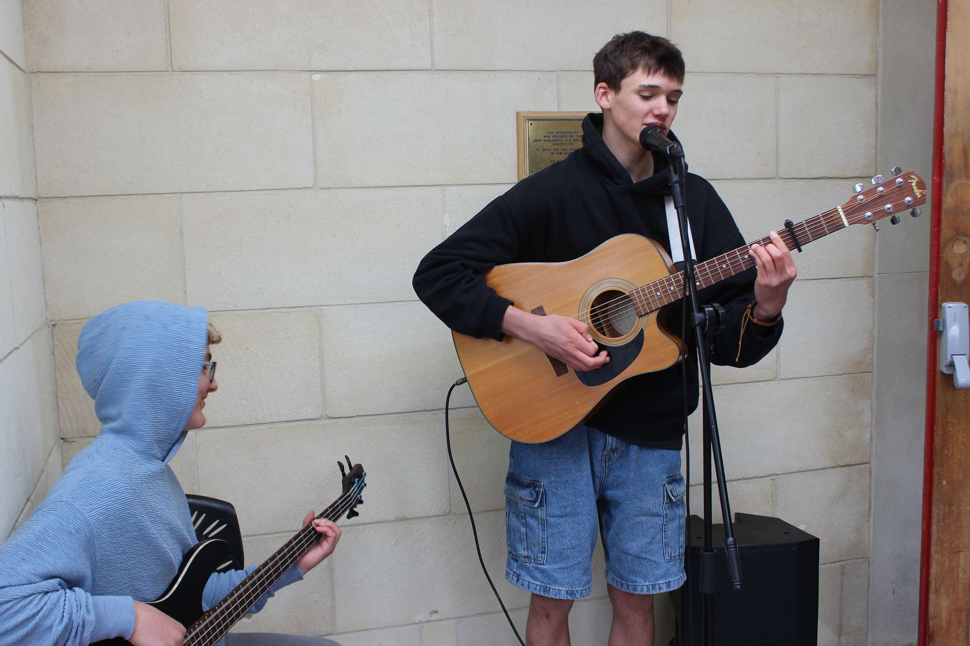 Shortly afterwards on the main stage, we were treated to some original tunes from Toby & Jonah, as well as Reuben's new electronic solo project 'A Blue Goldfish' - it's always a daunting experience playing original music to a new crowd, but the students handled it with style and to a great reception from the community.