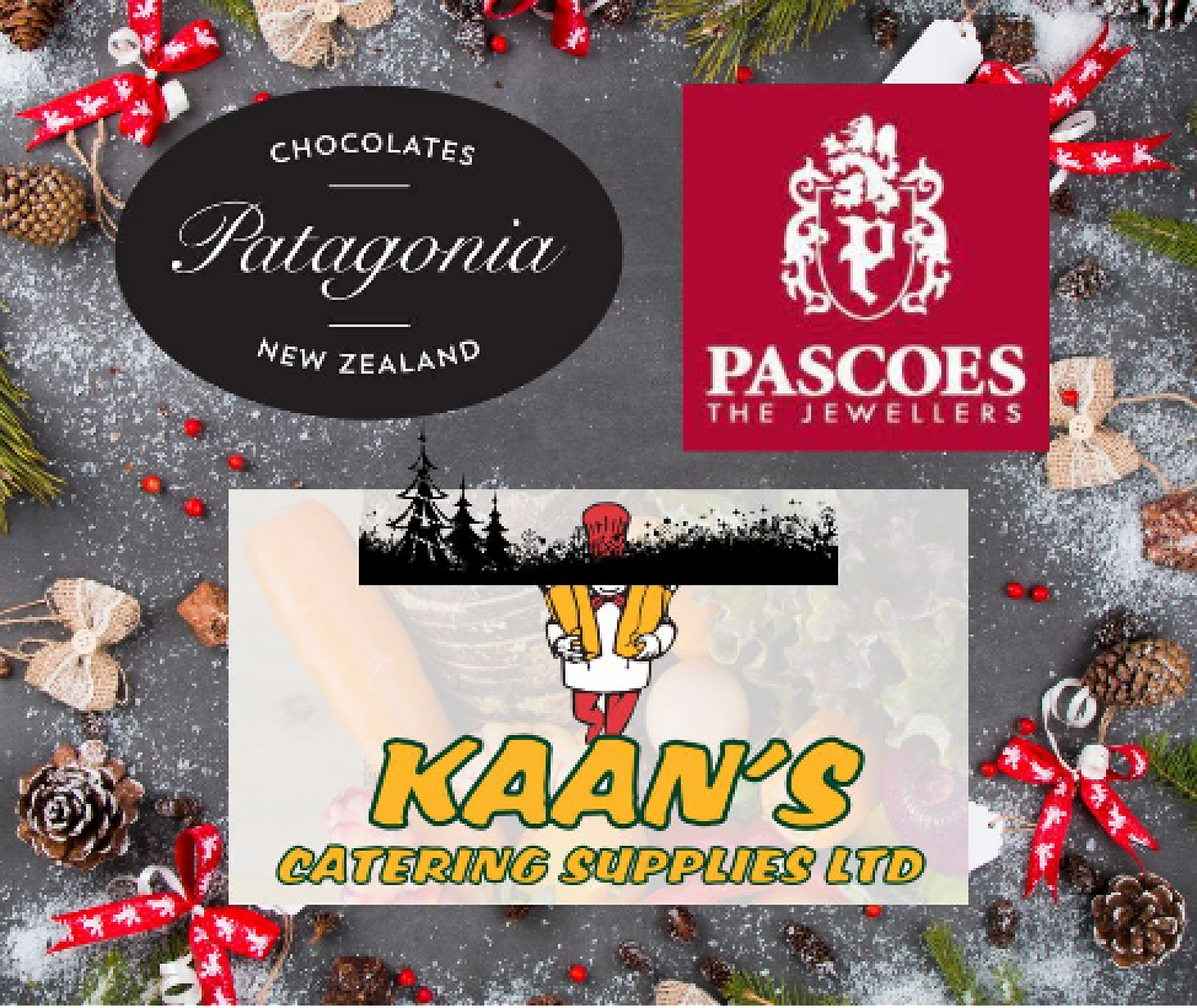 Auction Item #24. Luxury Christmas Package donated by Patagonia Chocolates, Pascoes the Jewellers, and Kaan’s Catering Supplies.