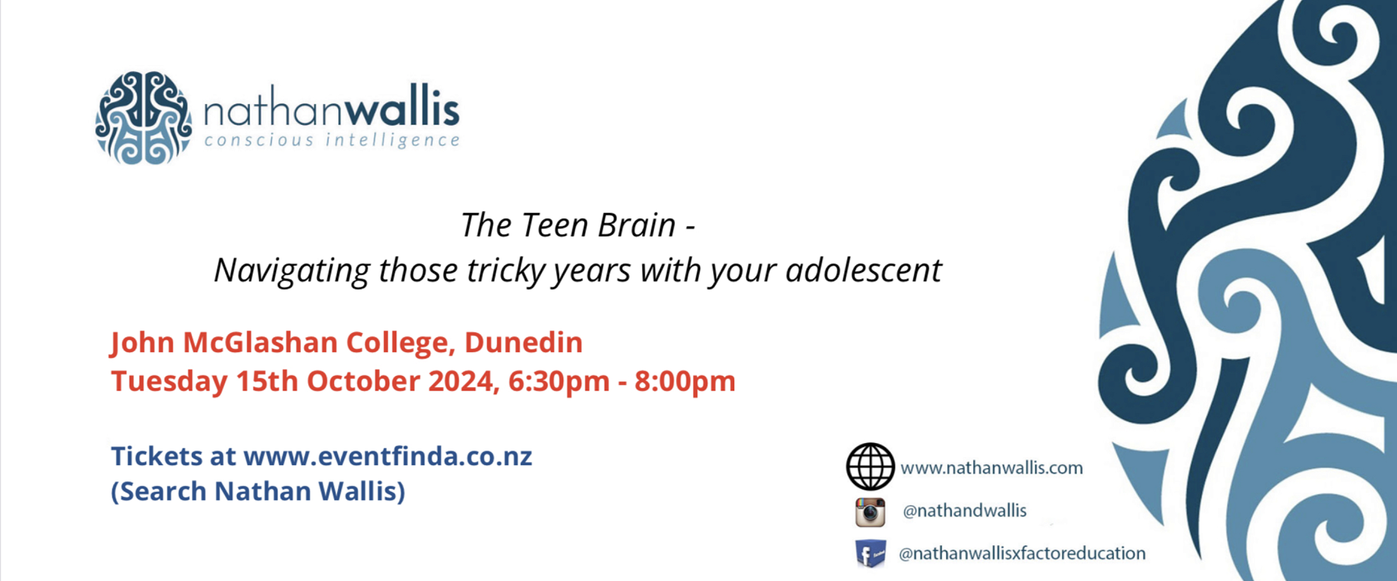 We are also delighted to invite you to a special parent evening at John McGlashan College with Nathan Wallis.