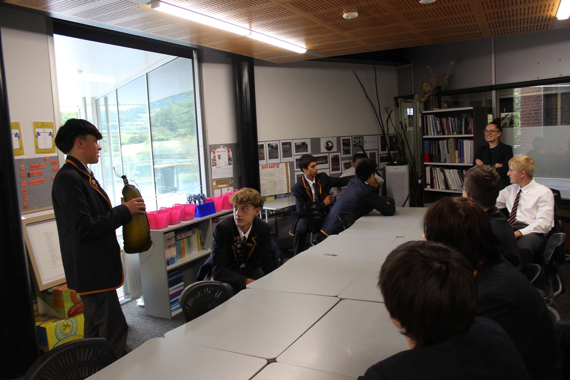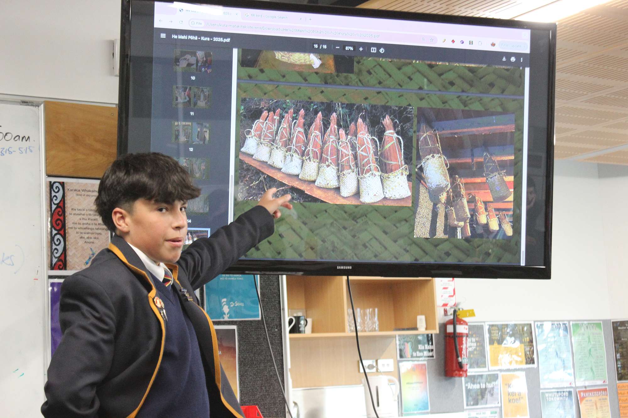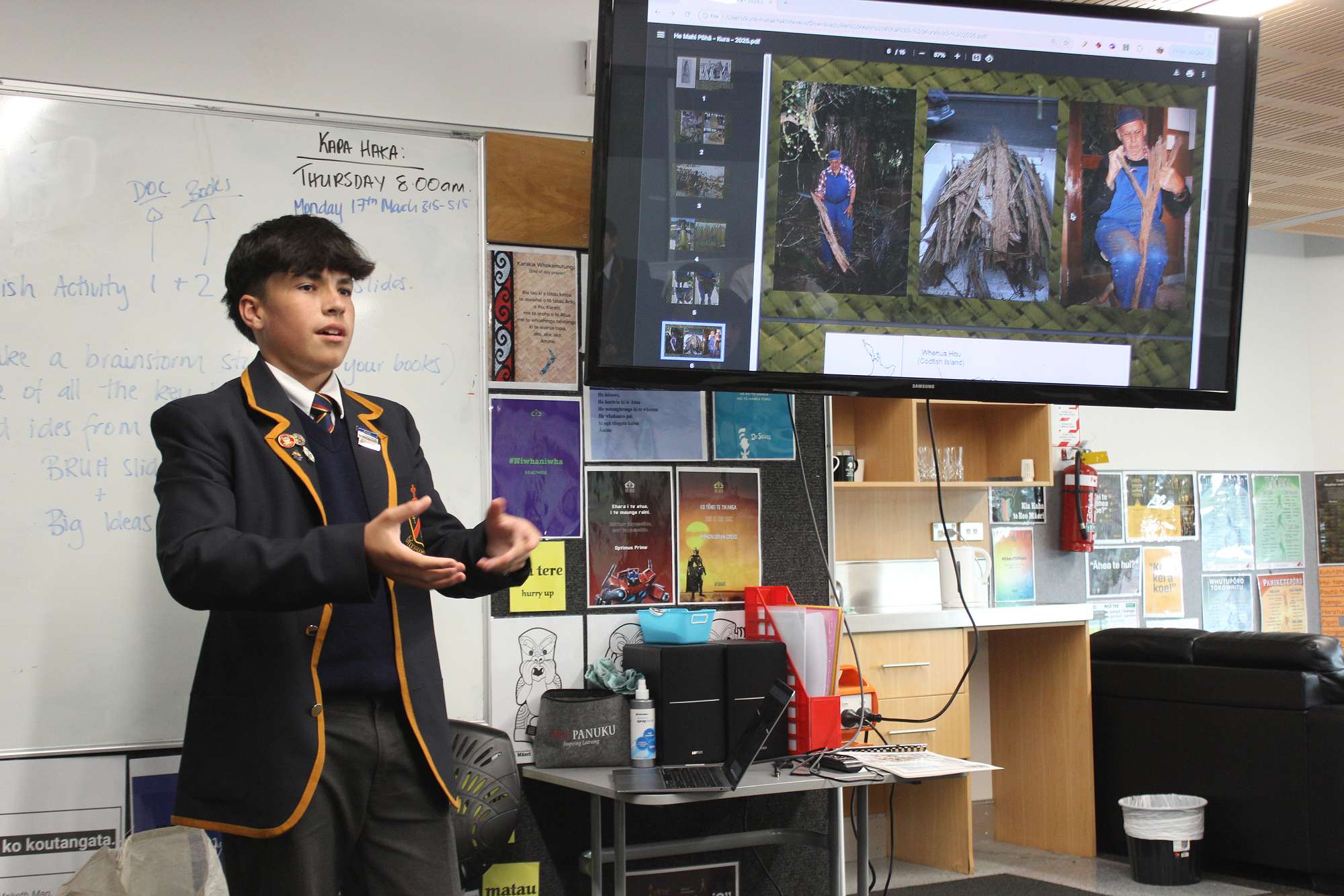 Student Kura Stevens gave an excellent talk about his whānau tradition of making Poha for harvesting Tītī.