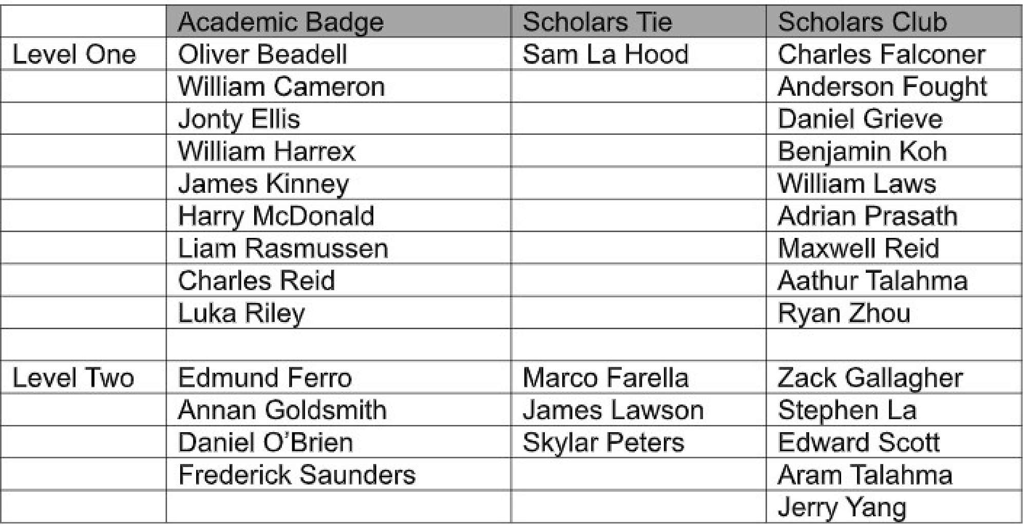 ‘Scholars Club’ the most prestigious award is awarded to NCEA boys who have achieved either 4 excellence subject endorsements OR 3 excellence and 2 merit subject endorsements. For IB students, they have achieved a total of at least 34 points.