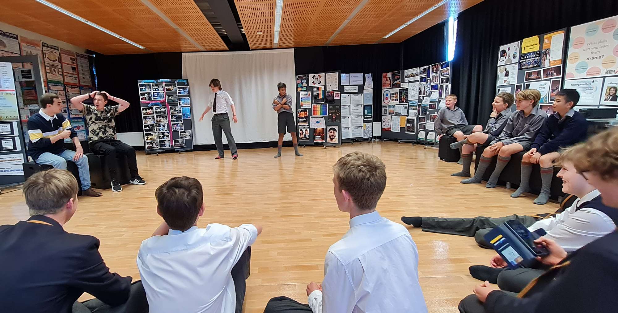 On Tuesday 27th February we were treated to a visit by old boys and former drama students, Tama Alexander and Finlay Tomkins, who were both JMC Improv members themselves. As a Year 11 student, Tama was actually part of the legendary 2019 JMC Improv group who represented Dunedin at the South Island Theatresports Final at The Court Theatre, who beat out schools from around Te Wai Pounamu to take the cup. In fact, we were the first team to take the cup outside of Canterbury since 1989. No mean feat!