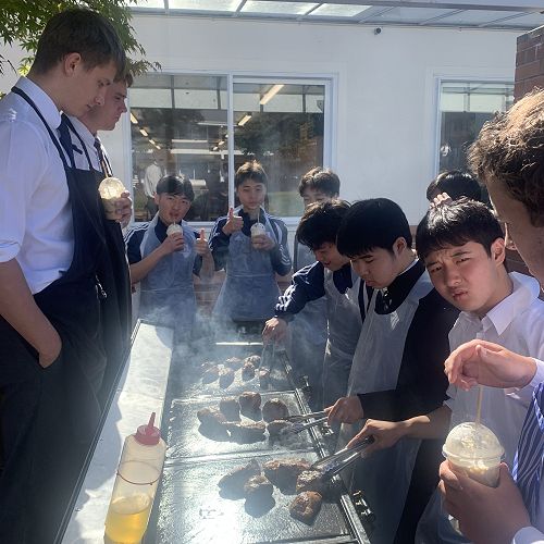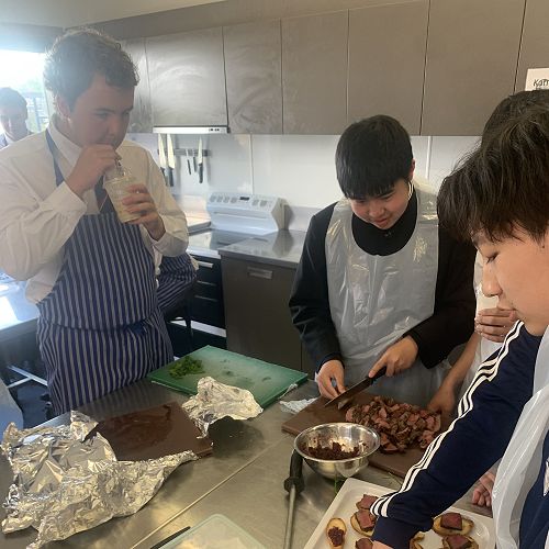 In Food Technology Dairy and venison were highlighted in Thursday’s Ichikawa Gakuen’s visit to the Food Room. The year 13 class took the lead and made three items with the visiting Japanese school. Seared wild venison served with savoury cranberry on bruschetta was Lachie C, Lachie M, Oliver K and Josh H. The upcoming hunting competition made for some interesting conversations as they ate this dish. Second on the menu: Southland Sushi. Daniel H, Henry C, and Hugo M took control of the cheese roll production.