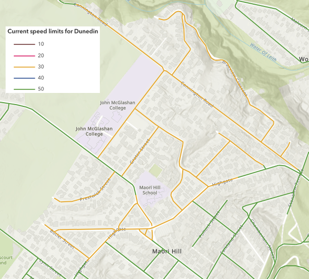 You can view current speed limits across Dunedin using the ArcGIS speed limits tool.