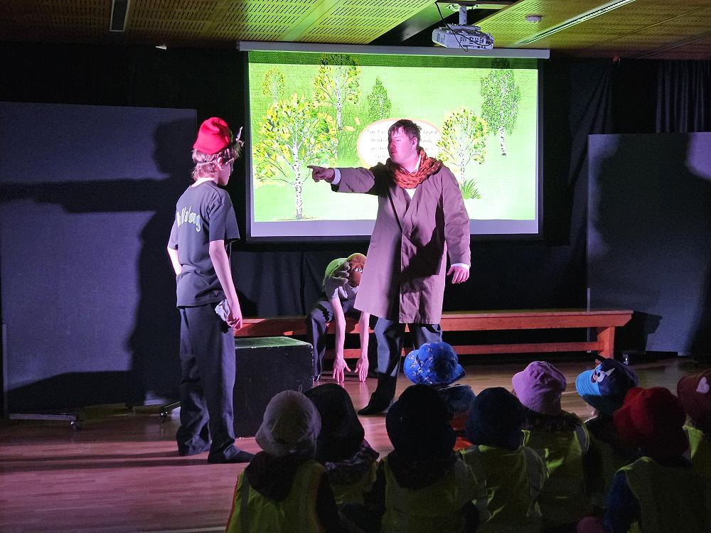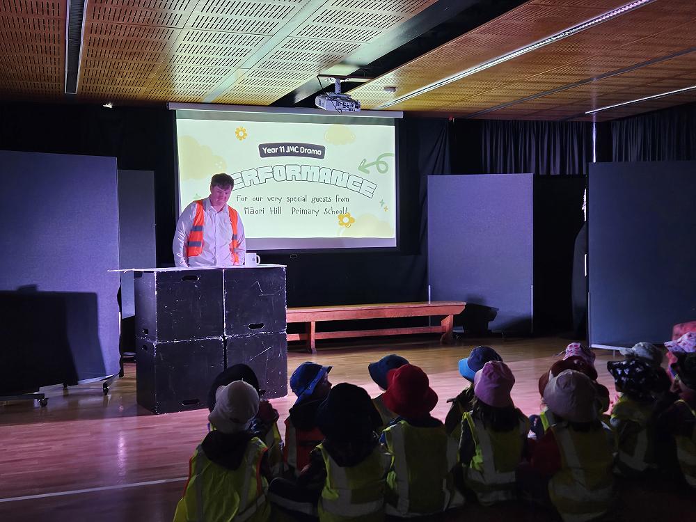 The project saw the drama students select two beloved junior picture books from our own school library—the hilarious classic "Wonky Donkey" and the witty favourite "I Want My Hat Back"—to transform into live, dramatic performances. The final week of 2025 classes for these senior students was made extra special as two separate new entrant classes from Māori Hill walked down to John McGlashan College to attend their show.