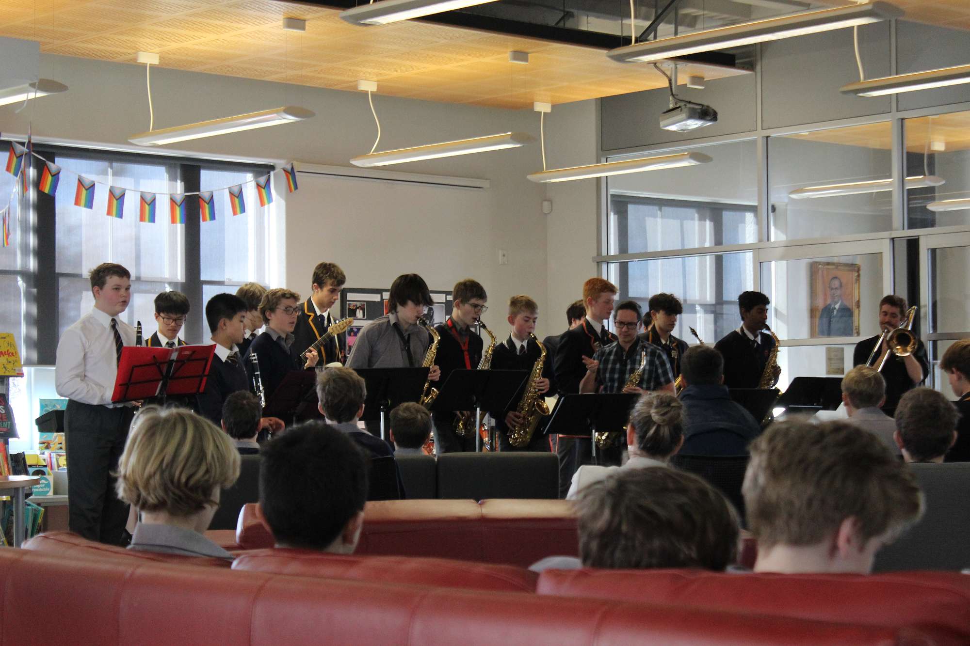 It's been a pleasure to start this role in the most musical month of the year, and our series of Friday lunchtime concerts ended with a bang as we were entertained by the John McGlashan Big Band - led by itinerant music teacher Mr Ross Kane. A rather enthusiastic Arts Coordinator was pleased to get the invite as well!
